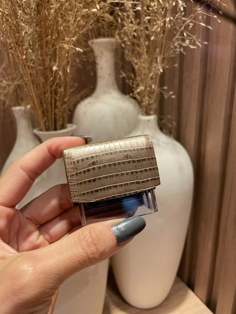 Carimbo de mesa revestido em couro legítimo na cor lezard bronze