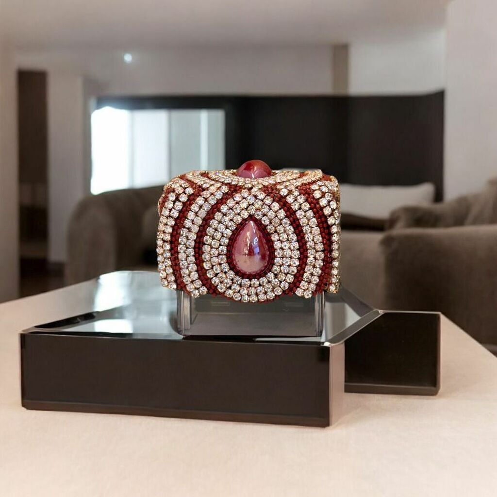 Um carimbo que é pura presença. Com cristais reluzentes e pedra central em tom rubi, essa peça exala poder, sofisticação e exclusividade. Feito à mão para profissionais que sabem que cada detalhe importa e que a assinatura também pode ser uma joia.